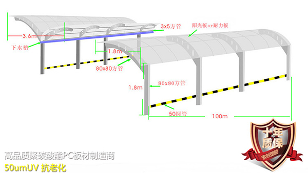 • 合肥新站昊天園1200平方5毫米透明耐力板車庫進出口